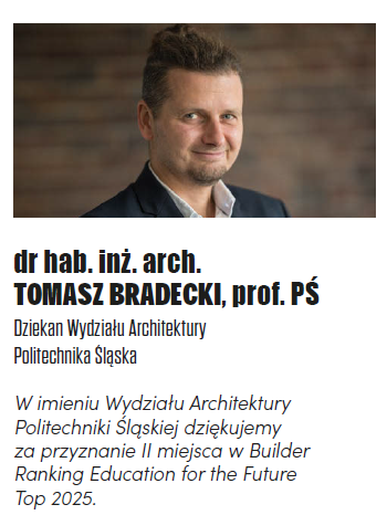 Wydział Architektury Politechniki Śląskiej na drugim miejscu w Builder Ranking Education For The Future Top 2025.