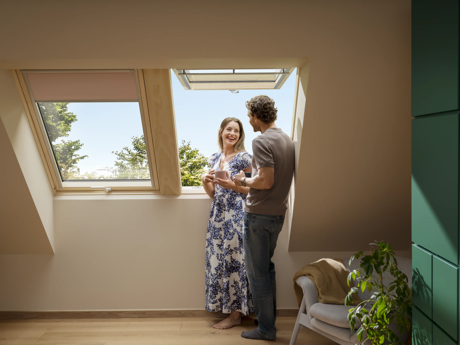 Nowe okna klapowo-obrotowe VELUX wyposażone są w ulepszony trzyszybowy pakiet 64 o bardzo dobrych parametrach izolacyjnych i akustycznych. Przekłada się to na skuteczną ochronę przed stratami ciepła, ograniczenie hałasu z zewnątrz oraz wyższy komfort termiczny na poddaszu: